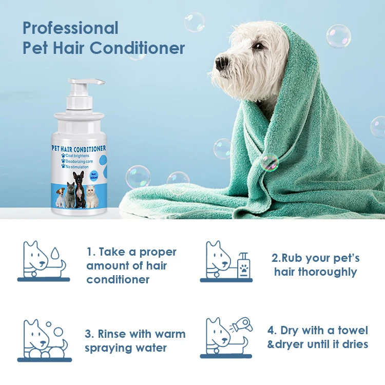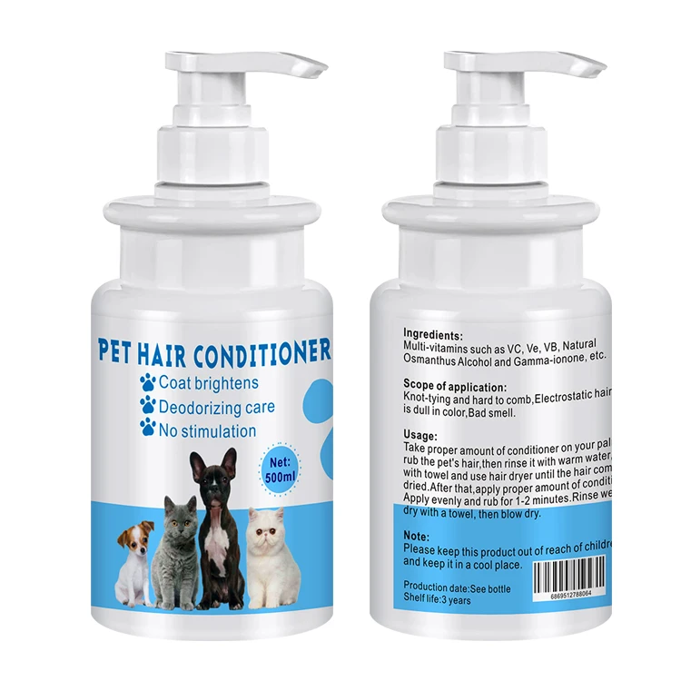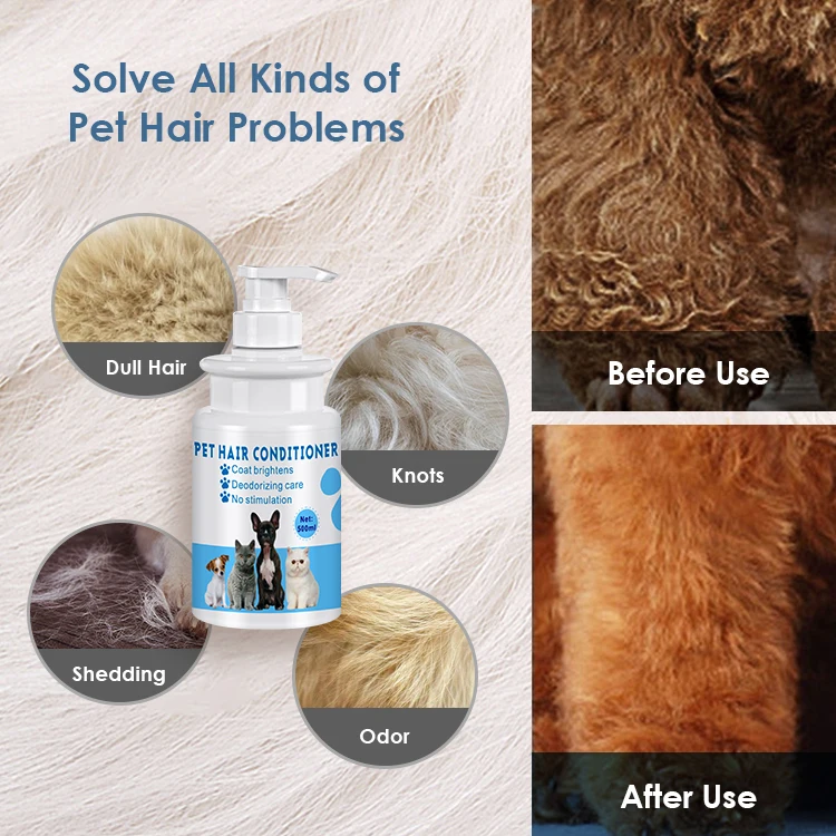 | Usage | ① Take proper amount of conditioner on your palm , and rub the pet's hair. ② Risen it with warm water ,dry with towel and use hair dryer until the hair completely dried. ③ Apply proper amount of conditioner ,apply evenly and rub for 1-2 minutes. . ④ Rinse well and dry with a towlel , then blow dry. |