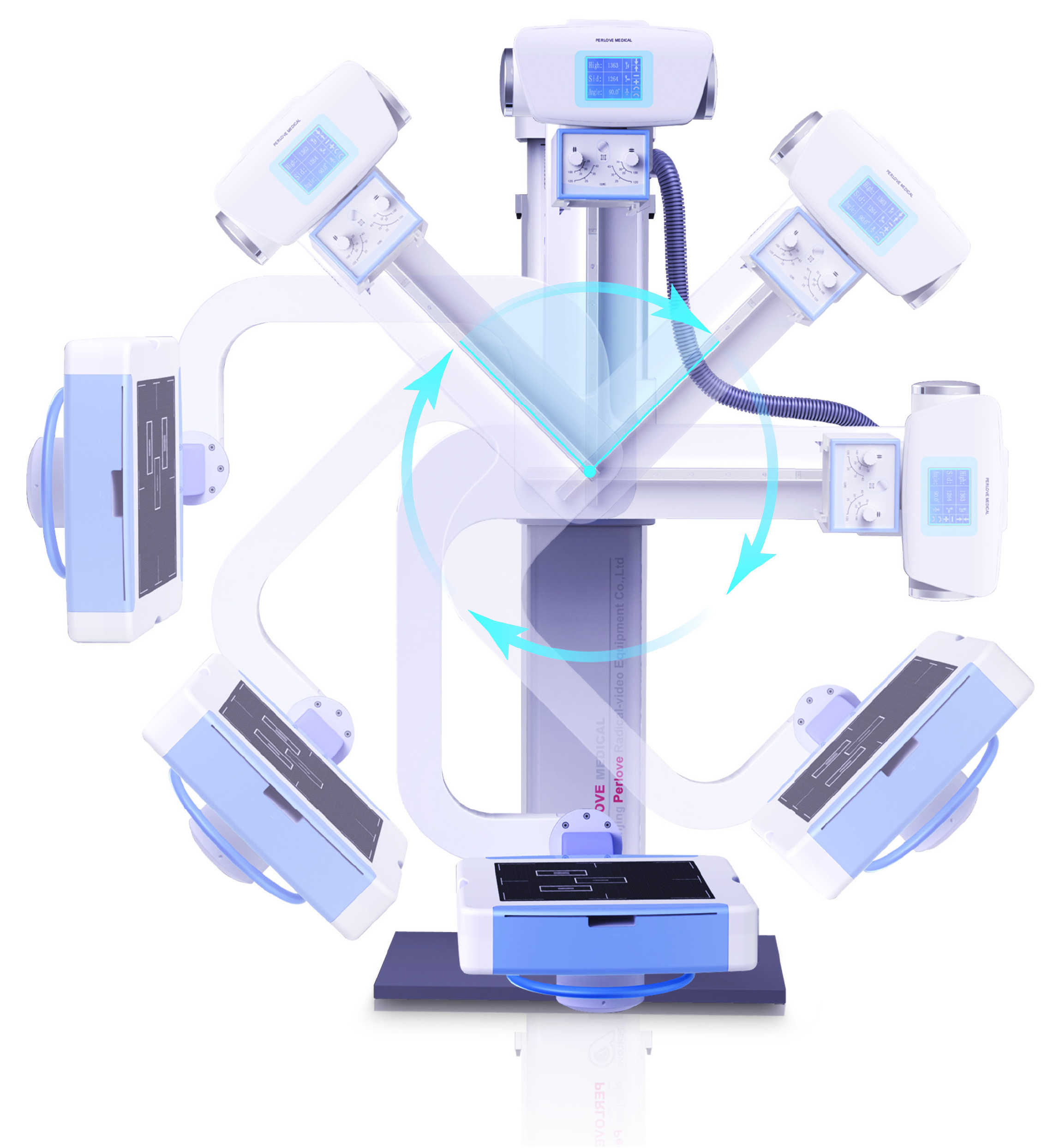 ★ The detector could be rotated ±45 degree along the axis direction, to satisfy the different photograph requirement of every body parts, such as Ankle joint, lateral spine