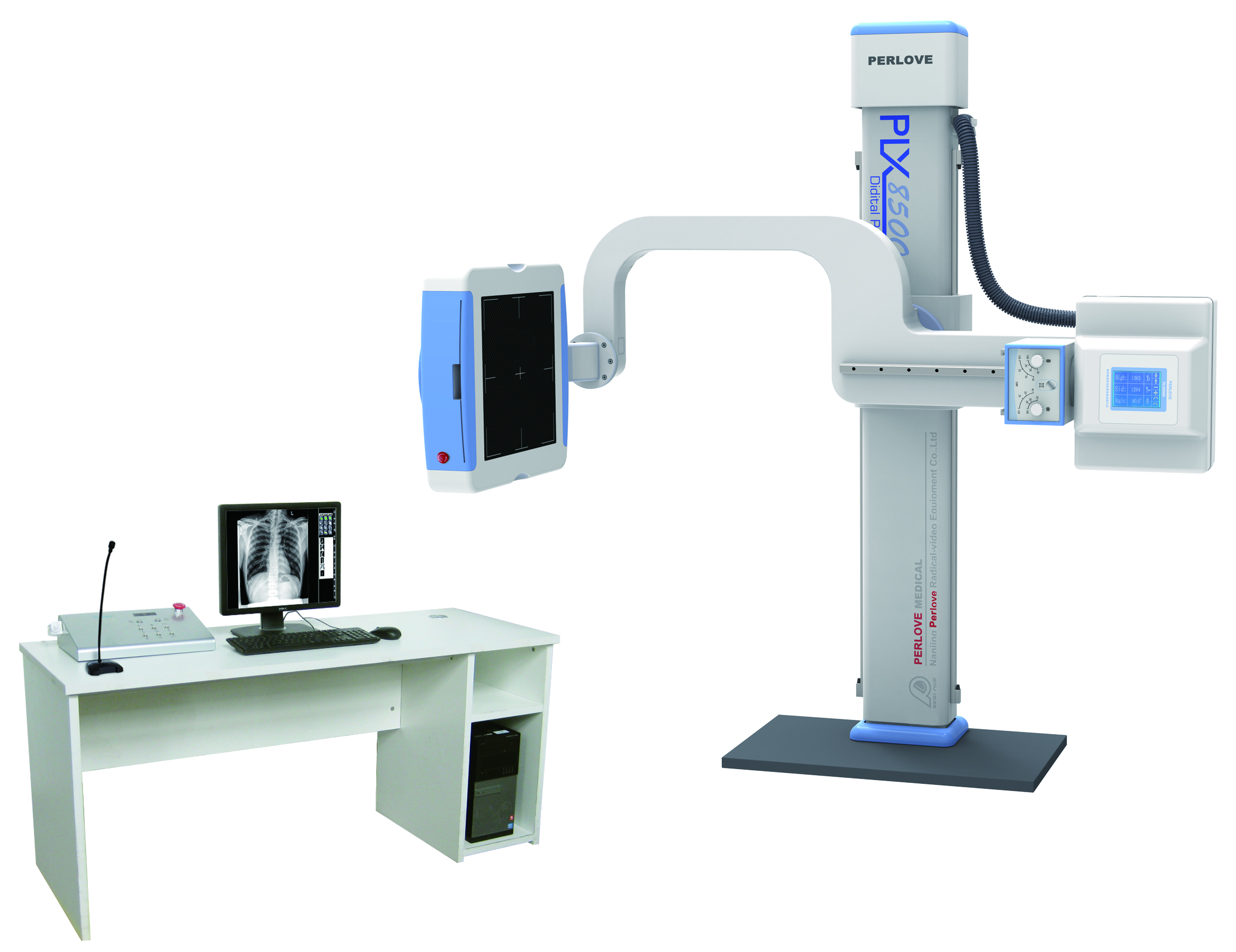 PLX8500C-202 is a high frequency flat-panel digital X-ray radiography system, suitable for radiology department, orthopedics, ward, emergency room, operating room, ICU and other departments. With flexible movement, easy operation, high efficiency, to meet the radiography for all of human body's parts, such as head, limbs, chest, spine, lumbar vertebrae, abdomen, etc.