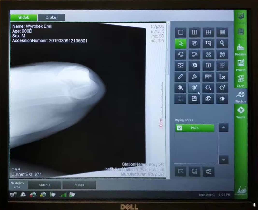 Image processing functions: LUT curve and symphony image processing; view patient and exposure dose information; image arbitrary and custom size cropping; add body position and arbitrary markers; add notes information; image selection; image scaling; image partial magnification; window width window ; image movement; image inversion; clockwise rotation; counterclockwise rotation; vertical flip; horizontal flip; distance measurement; angle measurement; image reset ; image deletion; brightness adjustment; black and white adjustment; image reprocessing; image queue transmission and export; image printing, printing film typesetting; image film scaling.