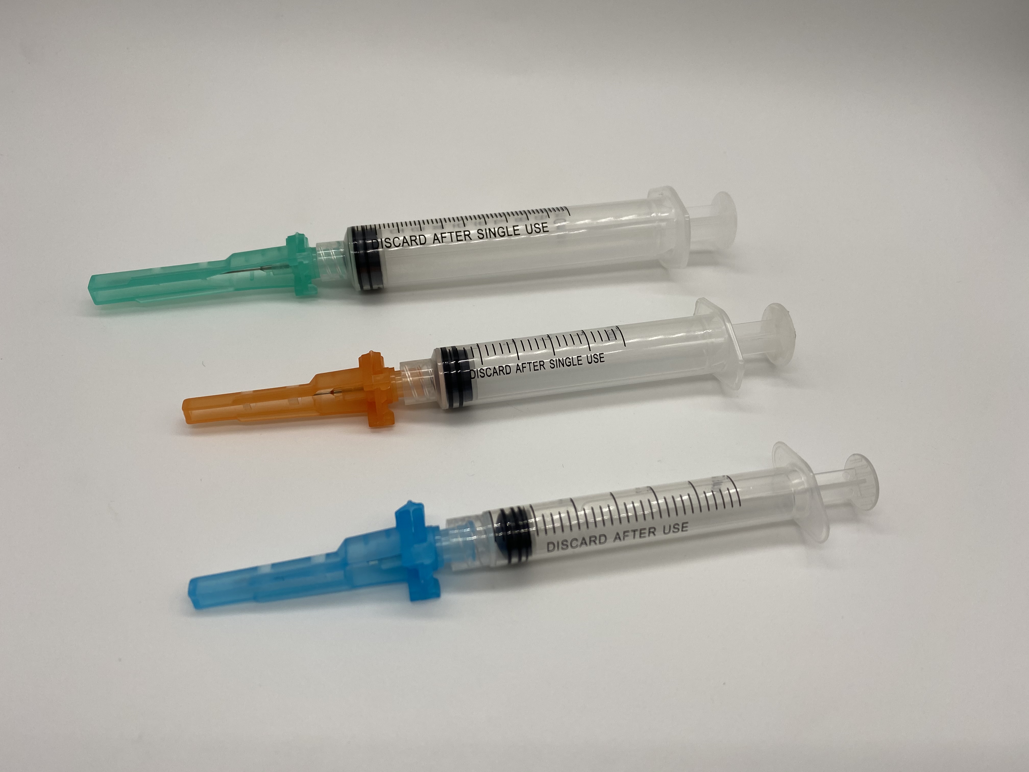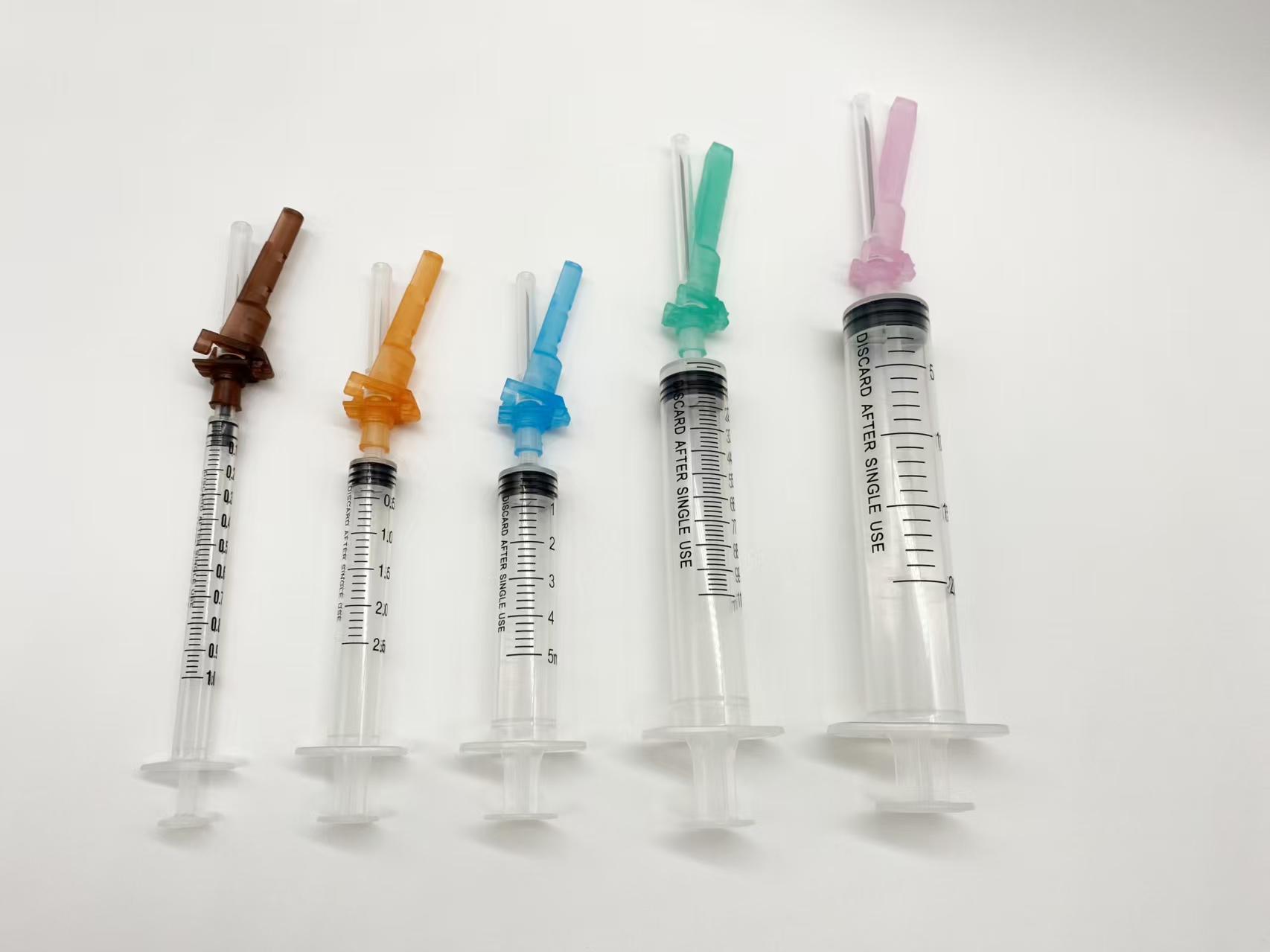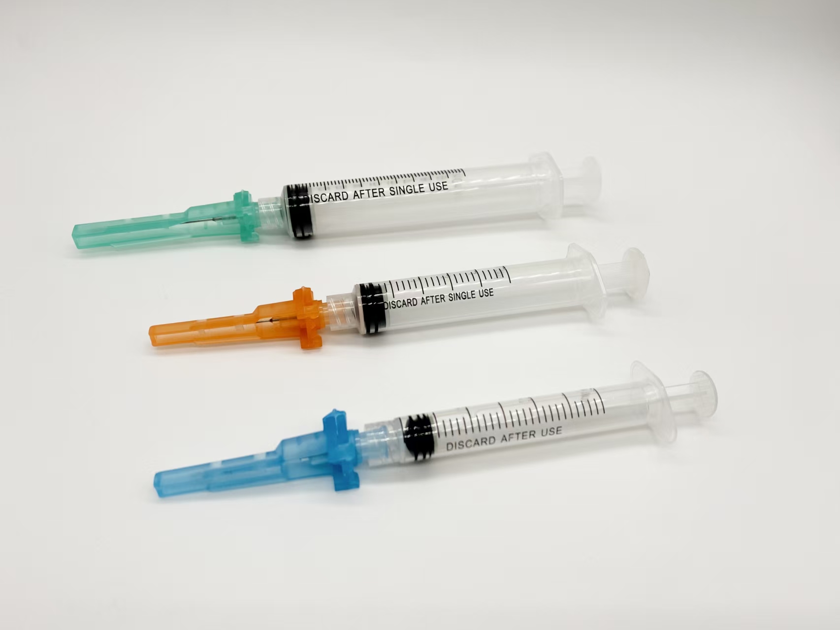 The safety syringe are assembled by the safety hypodermic needle, barrel, plunger and gasket. Cover the safety needle cap manually after use to activate the safety mechanism, which can avid nurse’s hand being hurt.