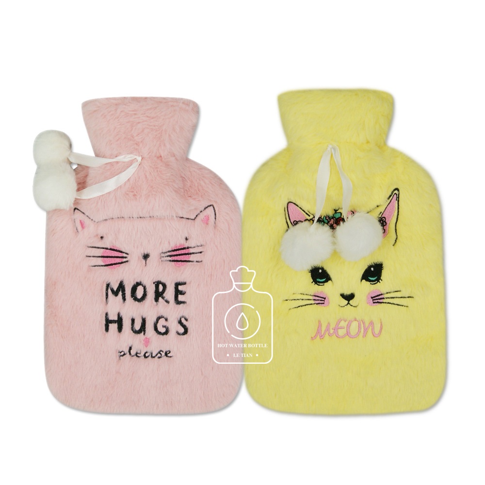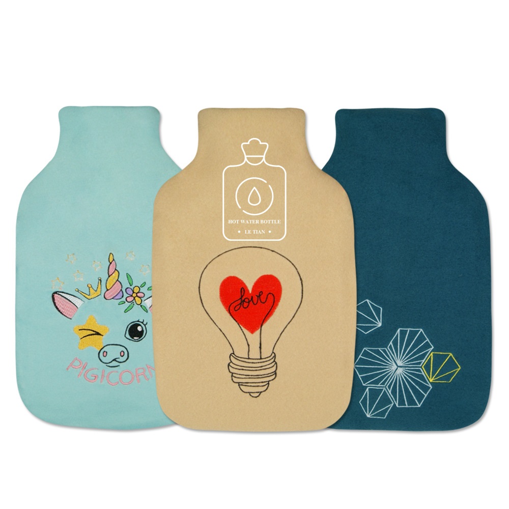 Water-filled rubber hot water bottle Shake fleece embroidery seam hot water bottle set different patterns are ordered in bulk